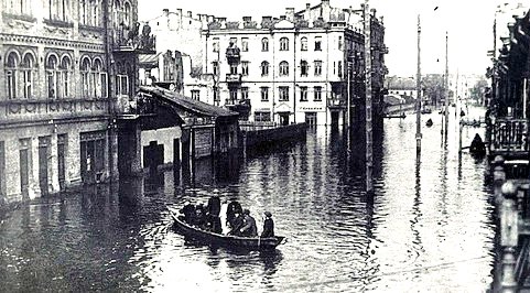 Обычные, небольшие наводнения регулярно заливали торговые районы Подола, которые посланники наблюдали еще во времена княгини Ольги, в то время, как масштабные потопы требовали от всех жителей низкорасположенной части города искать спасения в бегстве. Ведь, как свидетельствуют фото, тогда по Подолу можно было плавать на лодках.