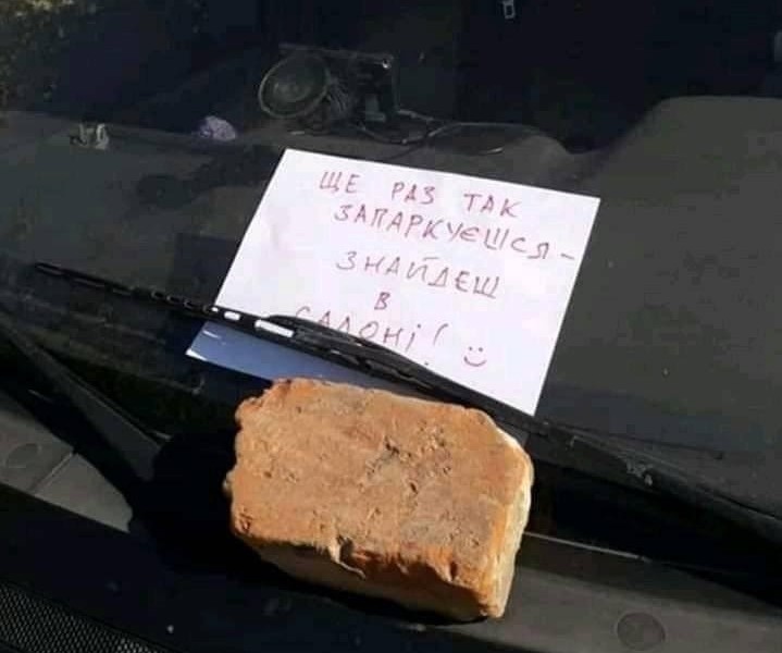 "Еще раз так припаркуешься - найдешь в салоне", - написано в послании.