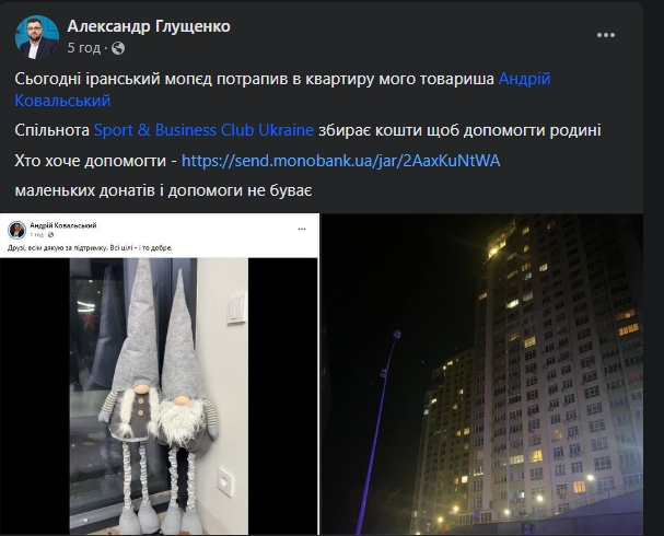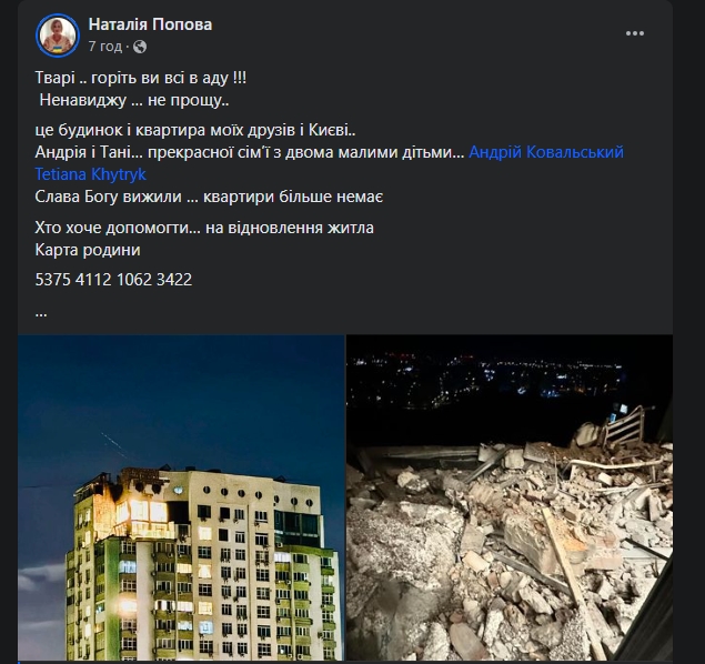 Он заявил, что сам он с семьей не пострадал, но его квартира полностью разрушена. В своих соцсетях Ковальский поблагодарил слова поддержки.