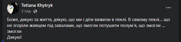 Его жена Татьяна Хитрик в соцсетях написала "выжили и это главное… квартиры теперь нет".