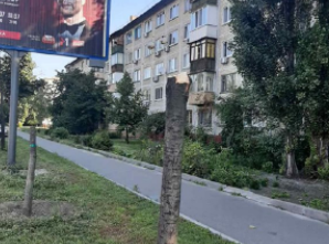 В Днепровском районе Киева срезали молодые деревья, который закрывали обзор на рекламный баннер.