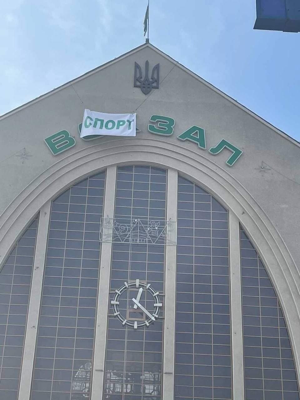 В Киеве 1 апреля Центральный железнодорожный вокзал изменил свое "назначение" - из вокзала он стал спортзалом. Именно такая вывеска появилась утром на здании вокзала.