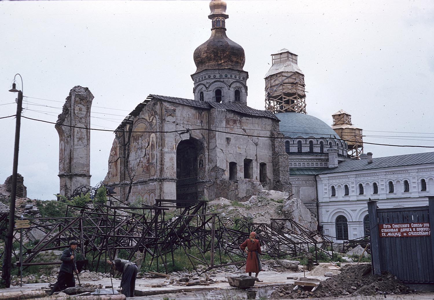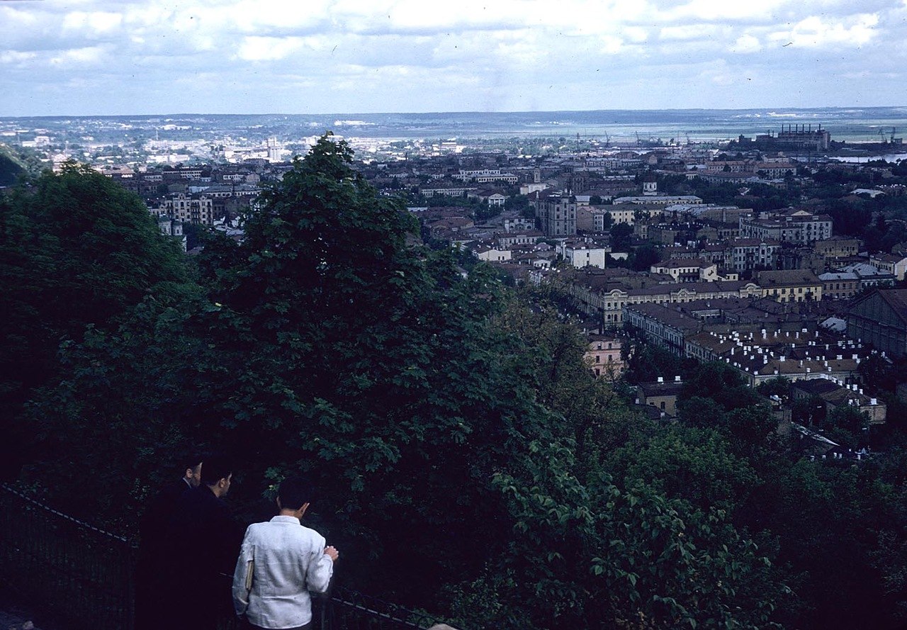 Что важно – фотографии цветные. На них – размеренная жизнь жителей и гостей столицы. На фотографиях, в частности, можно увидеть руины Успенского собора Киево-Печерской лавры, парк Славы, смотровую площадку из Печерска на Подол, частные домики у проспекта Науки, бассейн "Динамо" и тогда еще Республиканский стадион.