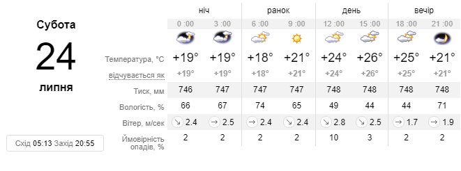 В эти выходные, 24 и 25 июля, температура воздуха в Киеве не превысит 26 градусов тепла, по прогнозу синоптиков.