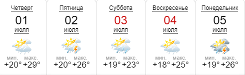 В понедельник, 5 июля, на протяжении всего дня будет стоять облачная погода. Утром и днем ожидается мелкий дождь, ближе к вечеру ему на смену придет дождь c грозой.