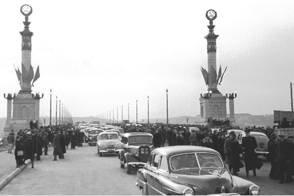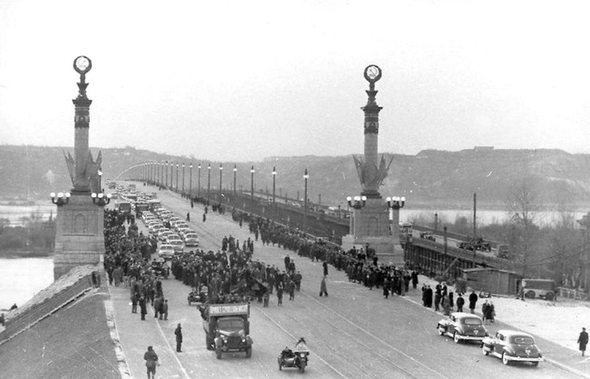 Киев с начала 1930-х годов активно развивался, о чем свидетельствуют архивные фото центра города, и 5 ноября 1953 года, через тринадцать лет после начала строительства, состоялось открытие первого в мире цельносварного моста длиной 1543 метра, соединившего берега Днепра между Выдубичами и Березняками. Назвали его в честь директора Института сварки АН УССР Евгения Патона, не дожившего до этого события три месяца.
