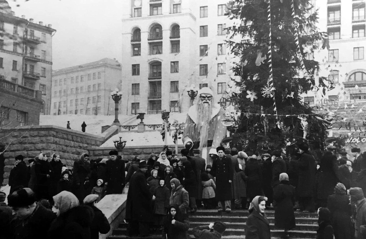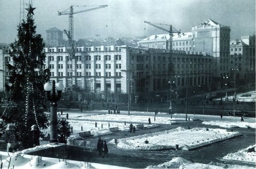 С середины 50-х главная елка города устанавливалась на главной площади, но в разных локациях: на месте, где ныне Монумент Независимости; ближе к гостинице "Украина"; возле Оперной студии консерватории; между Почтамтом и Домом профсоюзов или возле бывшего фонтана.