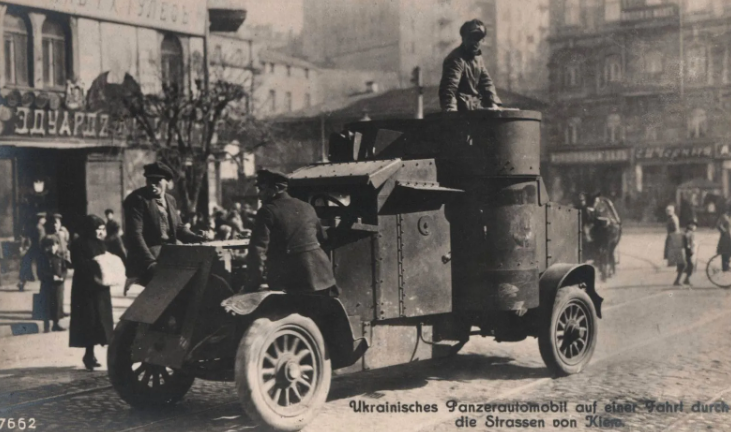 "Весна 1918 года. Киев. Украинский панцирник в городе", – так подписал снимок один из немецких фотографов.