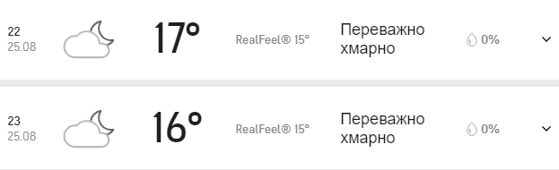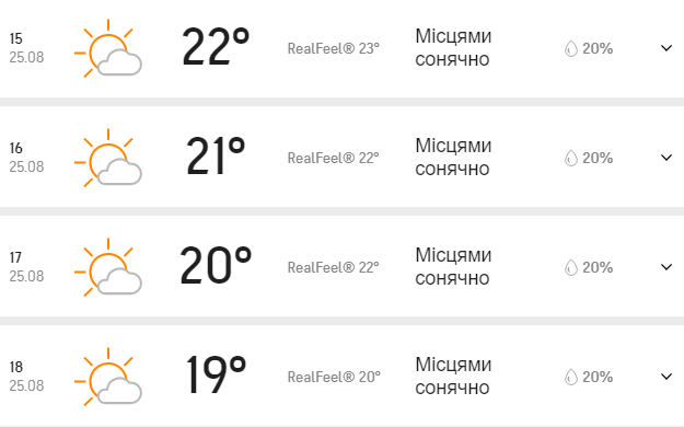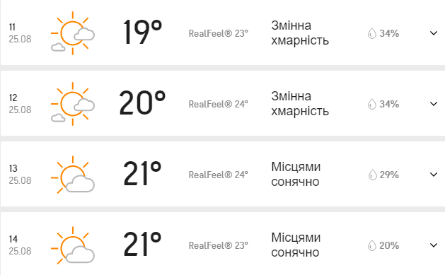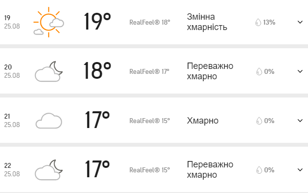 Прогноз погоды в Киеве на 25 августа