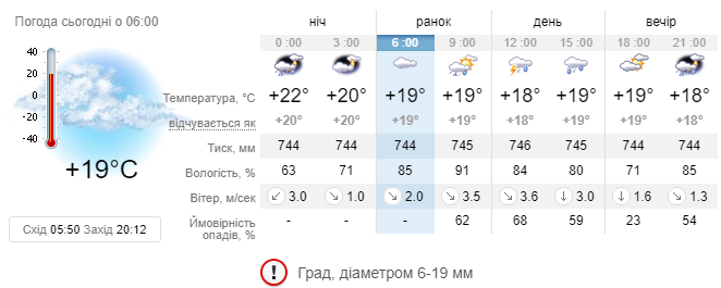 Утром в столице ожидается дождь, во второй половине дня - дождь c грозой. Синоптики также предупреждают о возможном выпадении града диаметром 6-19 мм. Средняя температура воздуха днем - от 18 до 19 градусов тепла.