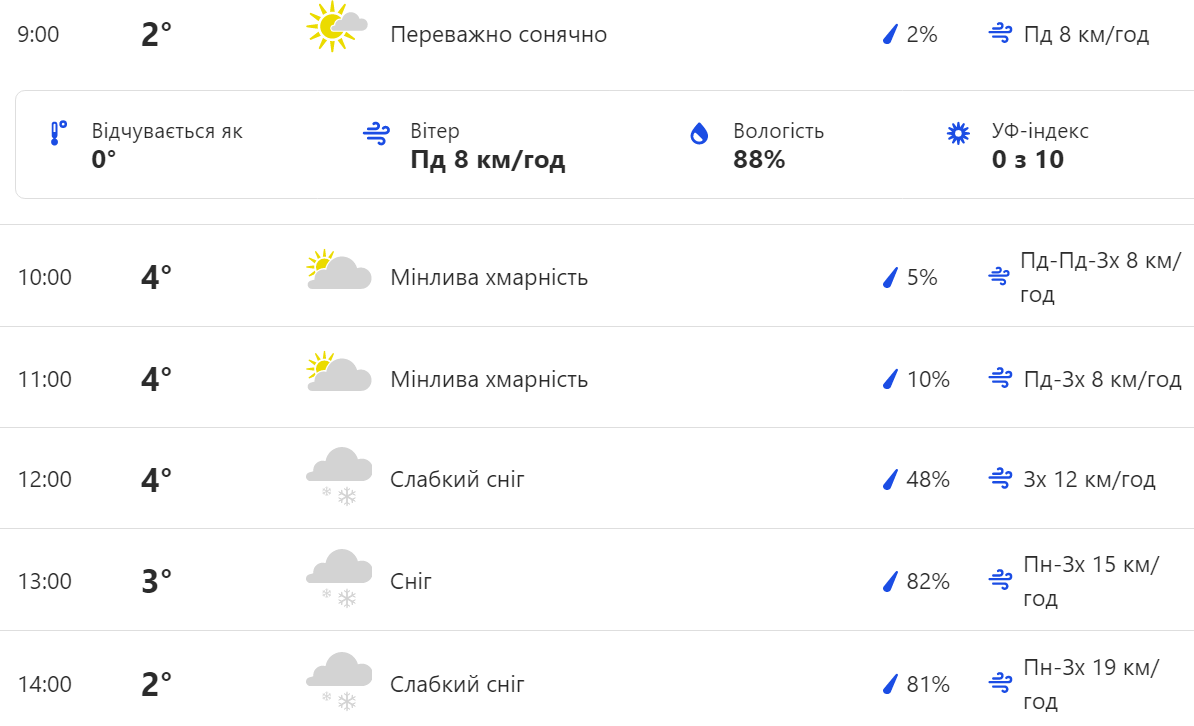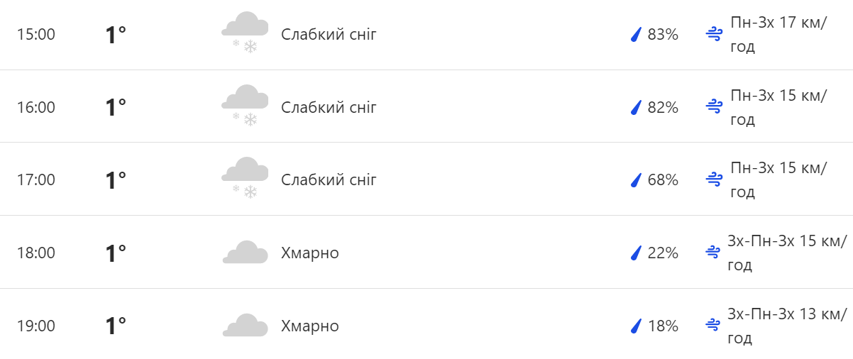 picture Снег с дождем в Киеве 3 декабря - почасовой прогноз погодыФото: скрин с сайта The Weathet Channel