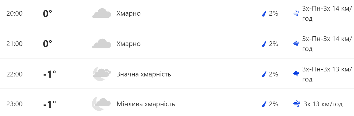 Вечером воздух постепенно охладиться до 0°C, а после 20:00 - до минусовых температур. Снега и дождя не будет до глубокой ночи.