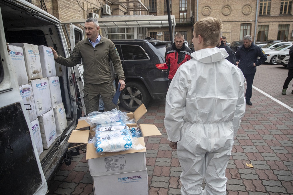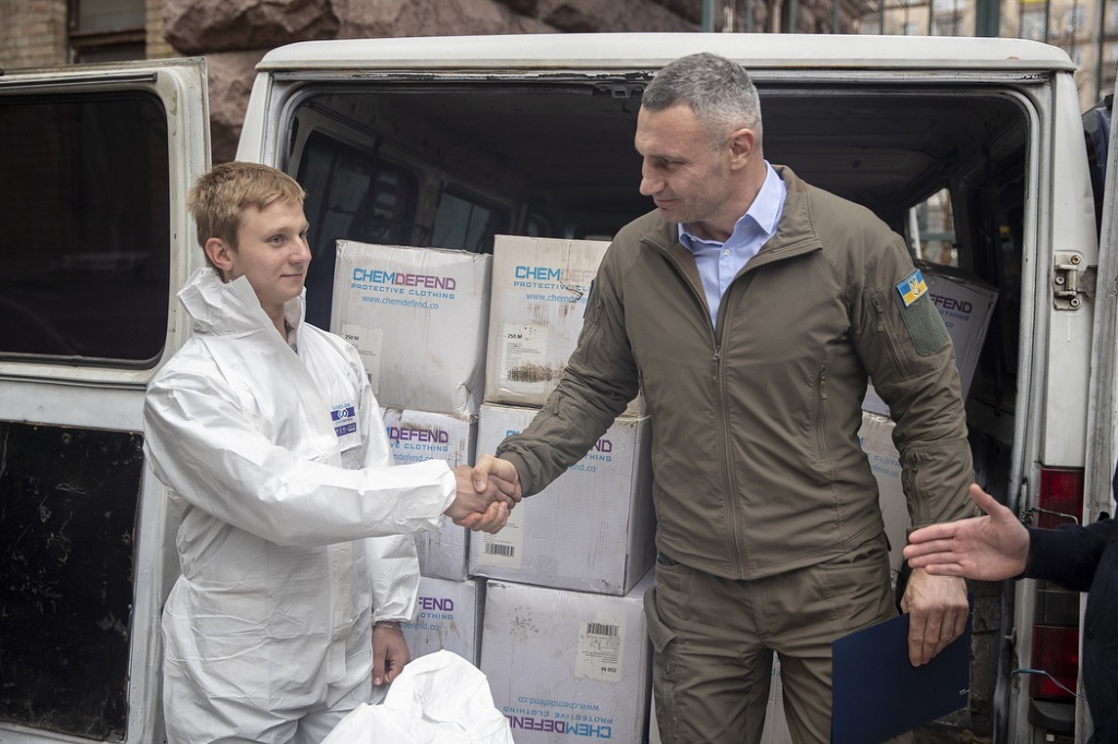 Мэр Киева Виталий Кличко передал столичным спасателям 1000 высокотехнологичных защитных комбинезонов, которые город получил при содействии украинских и иностранных благотворителей.