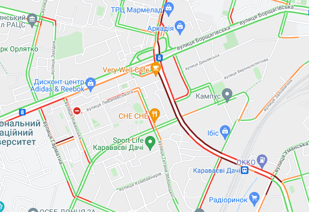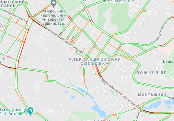 По состоянию на утро среды, 25 августа, затруднено транспортное движение на некоторых улицах Киева.