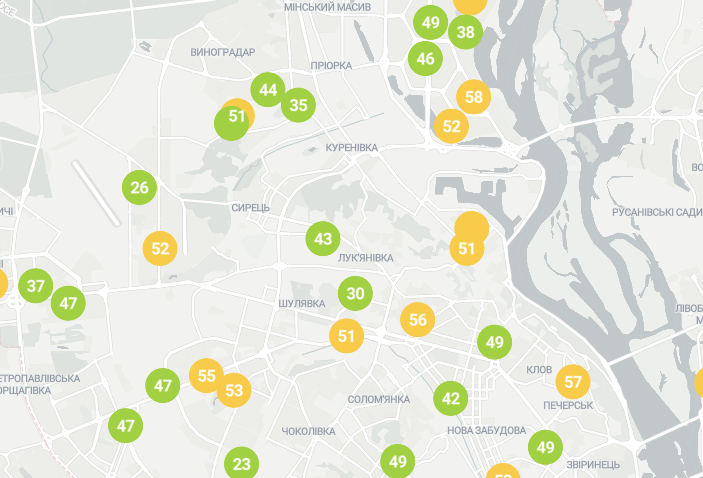 При этом данные с карты качества воздуха свидетельствуют о нормальном состоянии воздуха в Киеве.