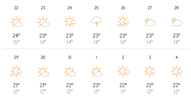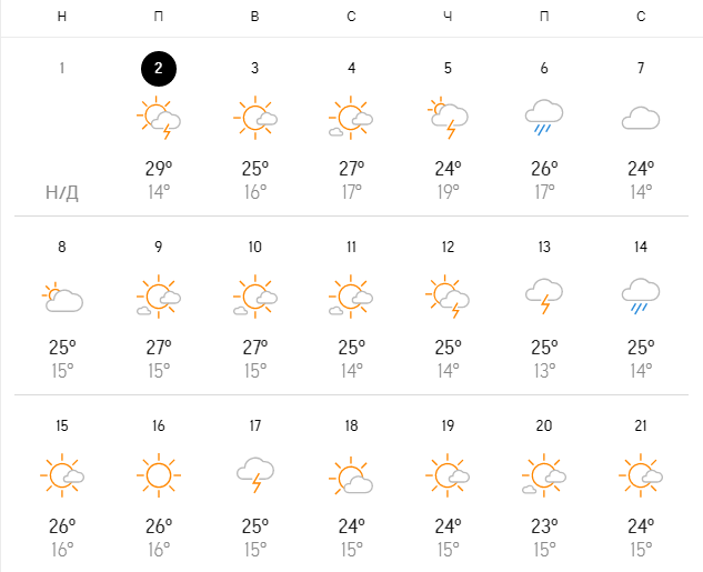 Во второй половине августа изнуряющая жара окончательно отступит. По данным сайта, максимальную температуру днем зафиксируют 15 и 22 августа - и она не превысит 25 градусов. Температура днем будет колебаться в диапазоне 19-23 градусов по Цельсию. При этом в темное время суток она снизится до ~13 градусов.