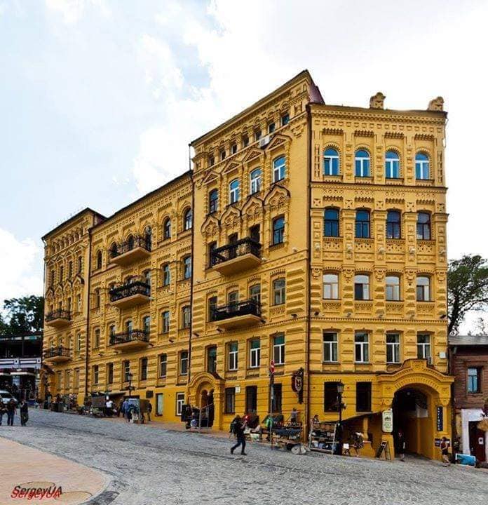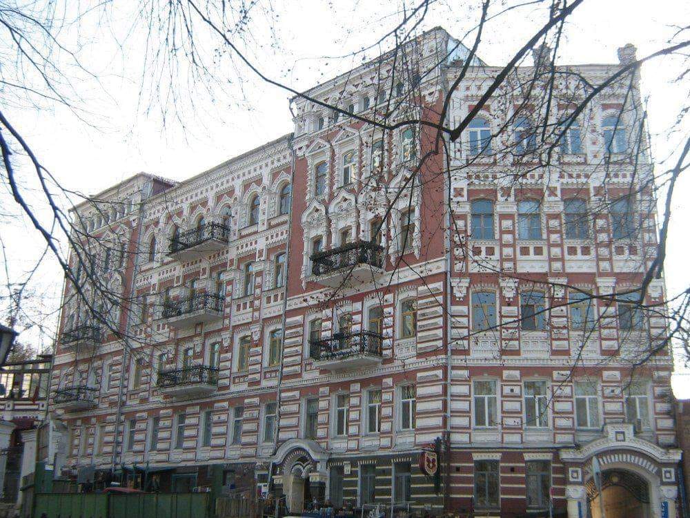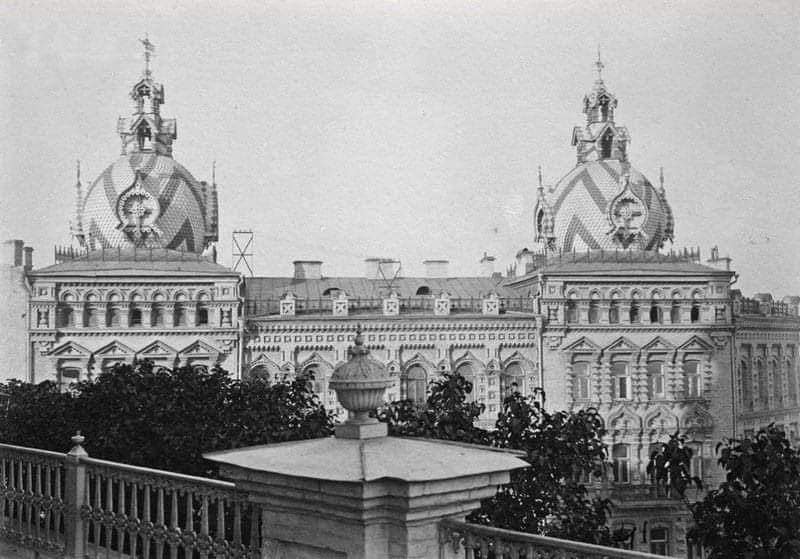 В сети появились фотографии дома-терема на Андреевском спуске, 34 начала XX века. Тогда его еще украшали две купольные башни.