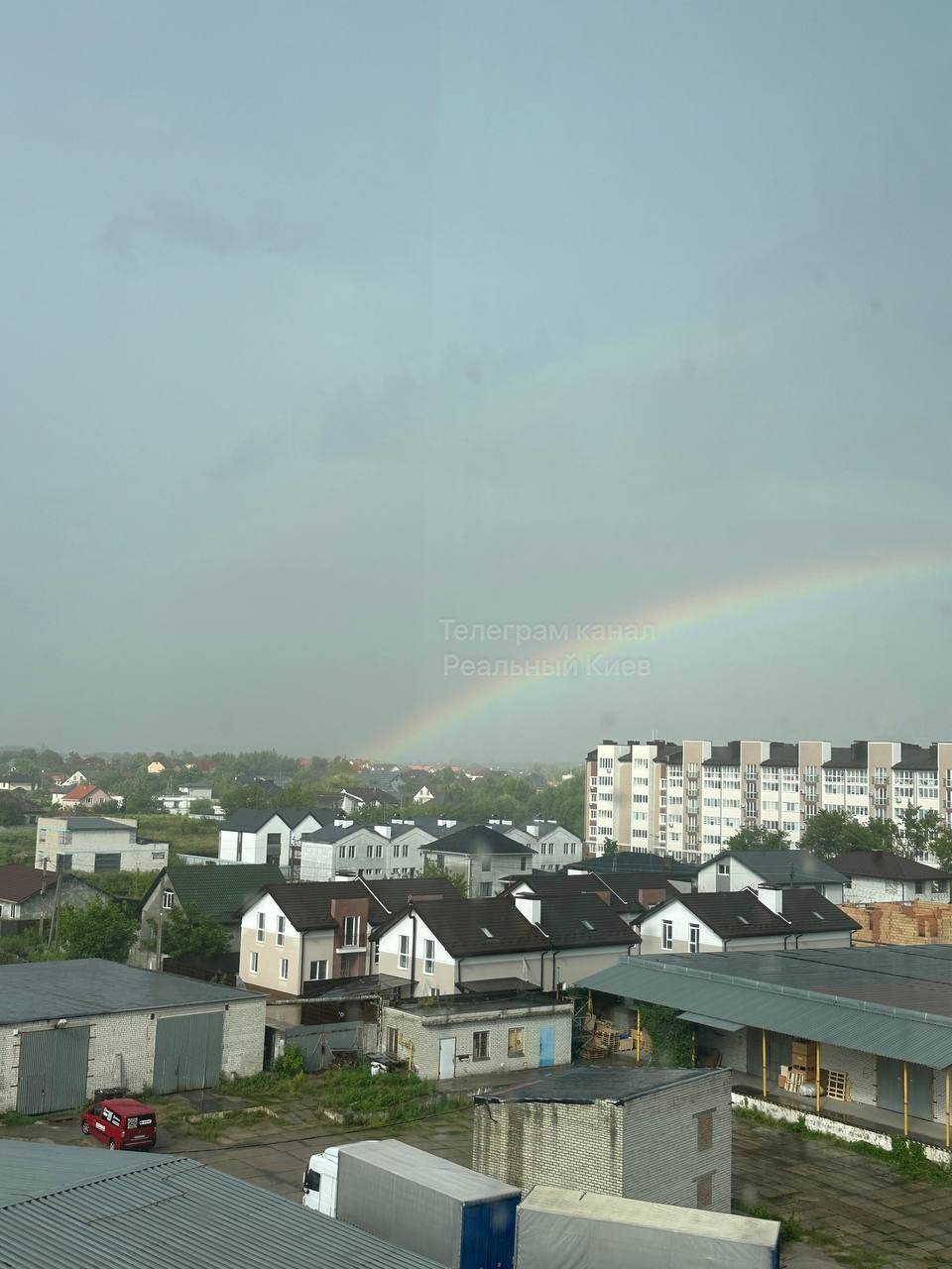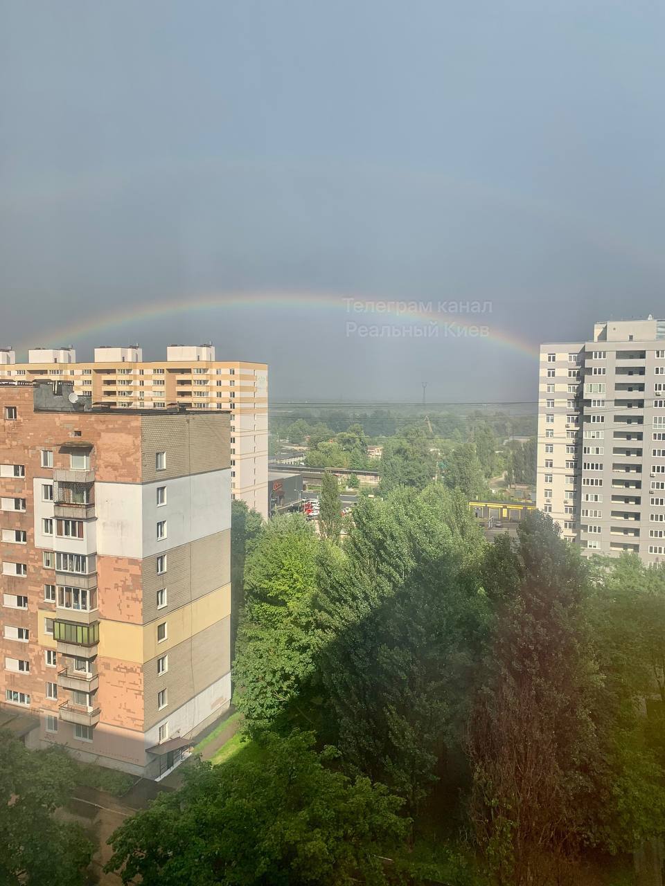 Ненастье в некоторых районах Киева еще не закончилось, однако жители столицы уже могут увидеть радугу.