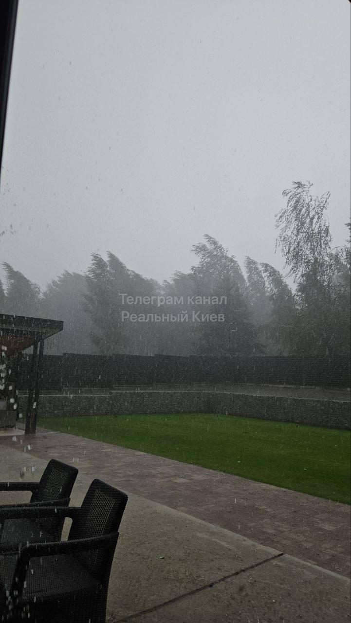 В частности, под вечер в некоторых районах Киева начался ливень с грозой. Более того, некоторые пользователи рассказывают о гигантском граде, который пугает своим размером.