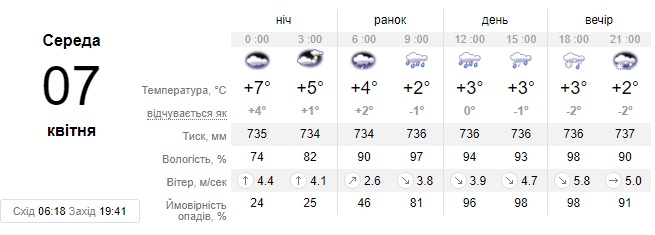 В среду, 7 апреля, в Киеве ожидается снег и дождь.