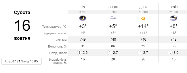 В субботу, 16 октября, в Киеве пасмурное утро сменится ясным днем, но к вечеру небо опять затянется облаками. Без осадков.