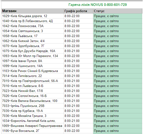 В связи со сложившейся ситуацией сеть супермаркетов NOVUS запустила опцию, позволяющую покупателям в режиме реального времени проверить, работает ли тот или иной конкретный магазин.