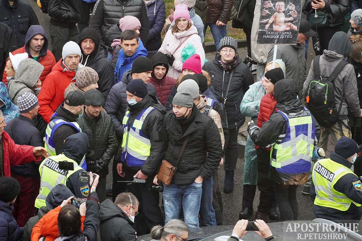 В Киеве у здания Верховной Рады продолжается акция противников вакцинации, не обошлось без стычек с полицейскими.
