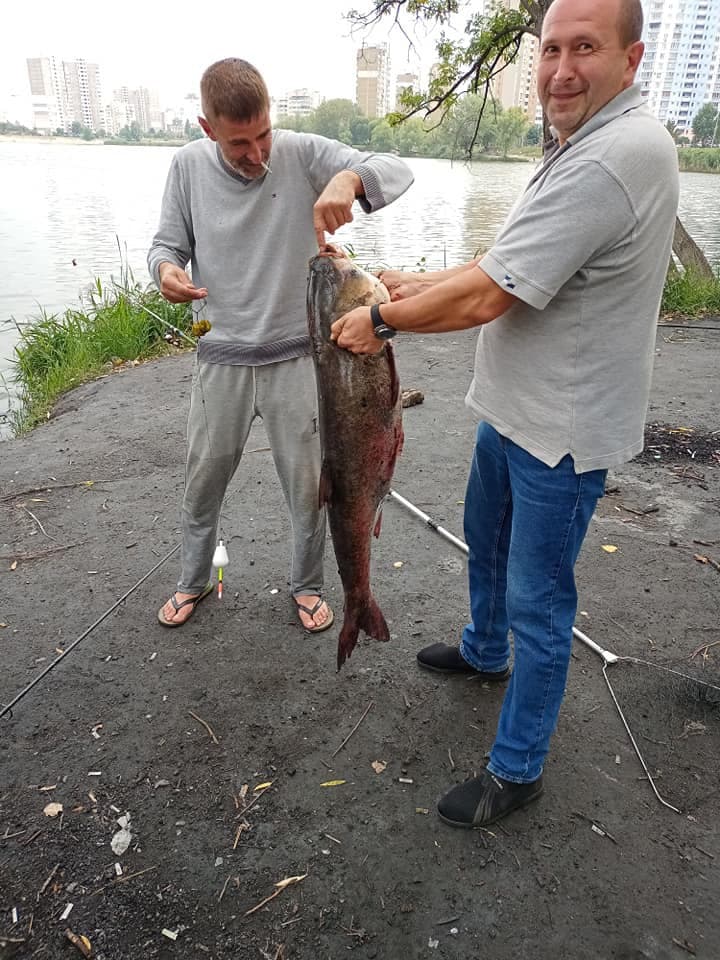 В Киеве мужчинам удалось поймать довольно крупную рыбу как для городского водоема. Из озера Солнечное они выловили огромного толстолобика.
