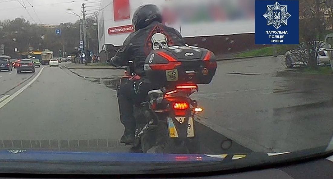 Патрульные в Киеве выписали штраф мотоциклисту, у которого на номерах заметили женское нижнее белье.
