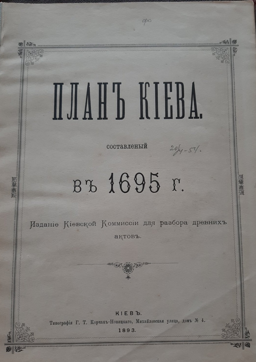 План Киева, составленный в 1695 г., опубликован в 1893 г.