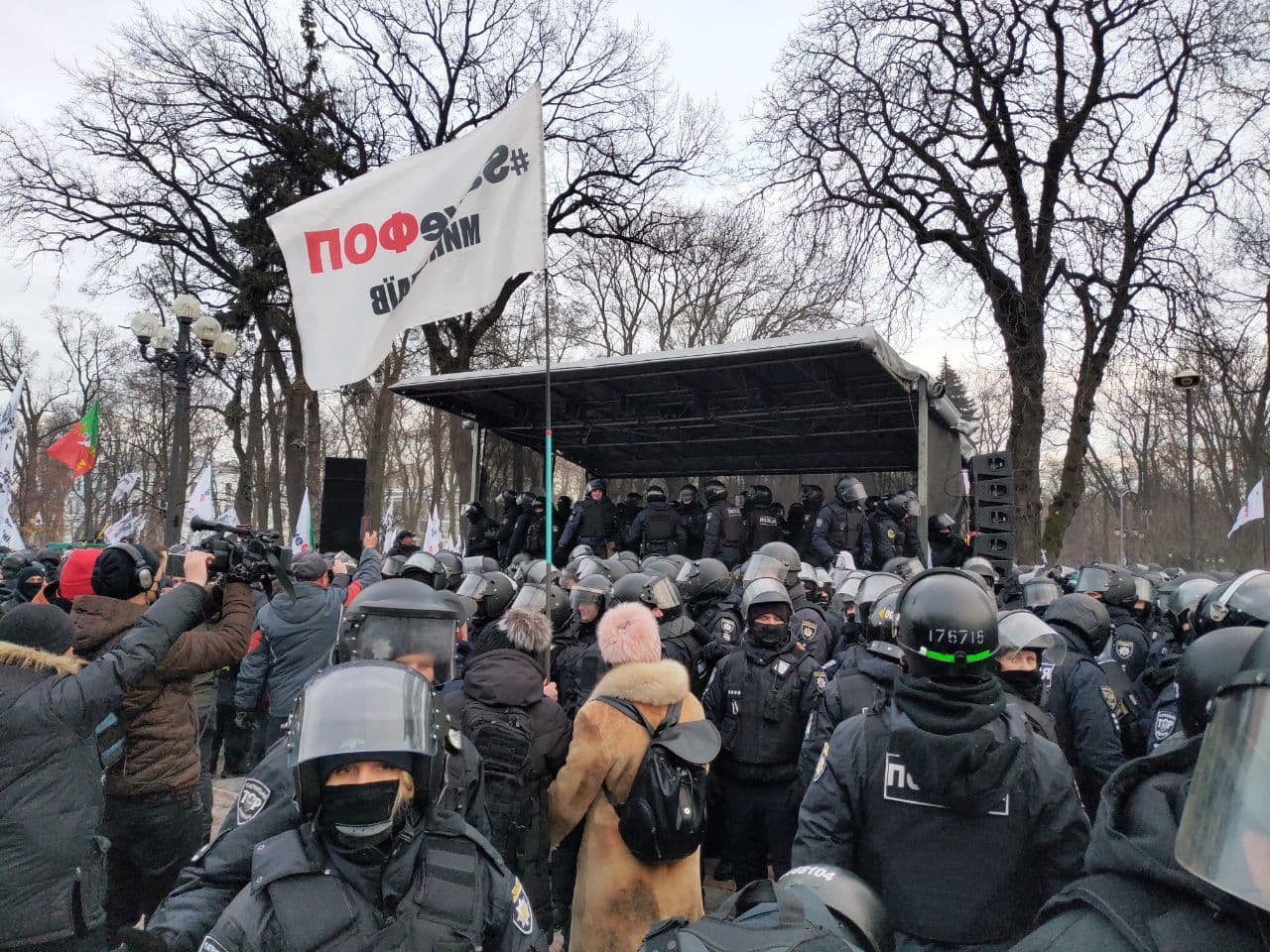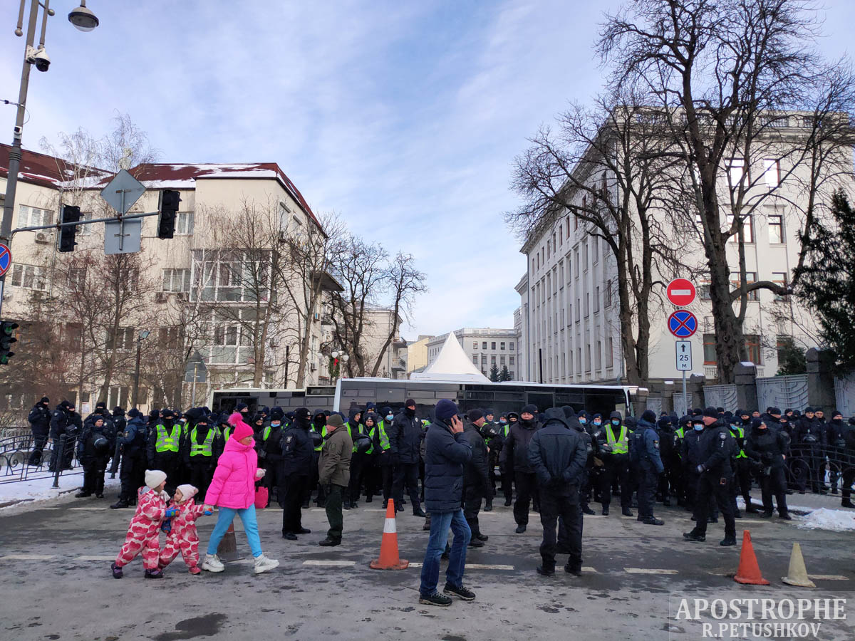 14:30 Лидер протестующих и организатор акции заявил, что если через 15 минут к ним не придет Зеленский, то они будут прорываться в Раду.