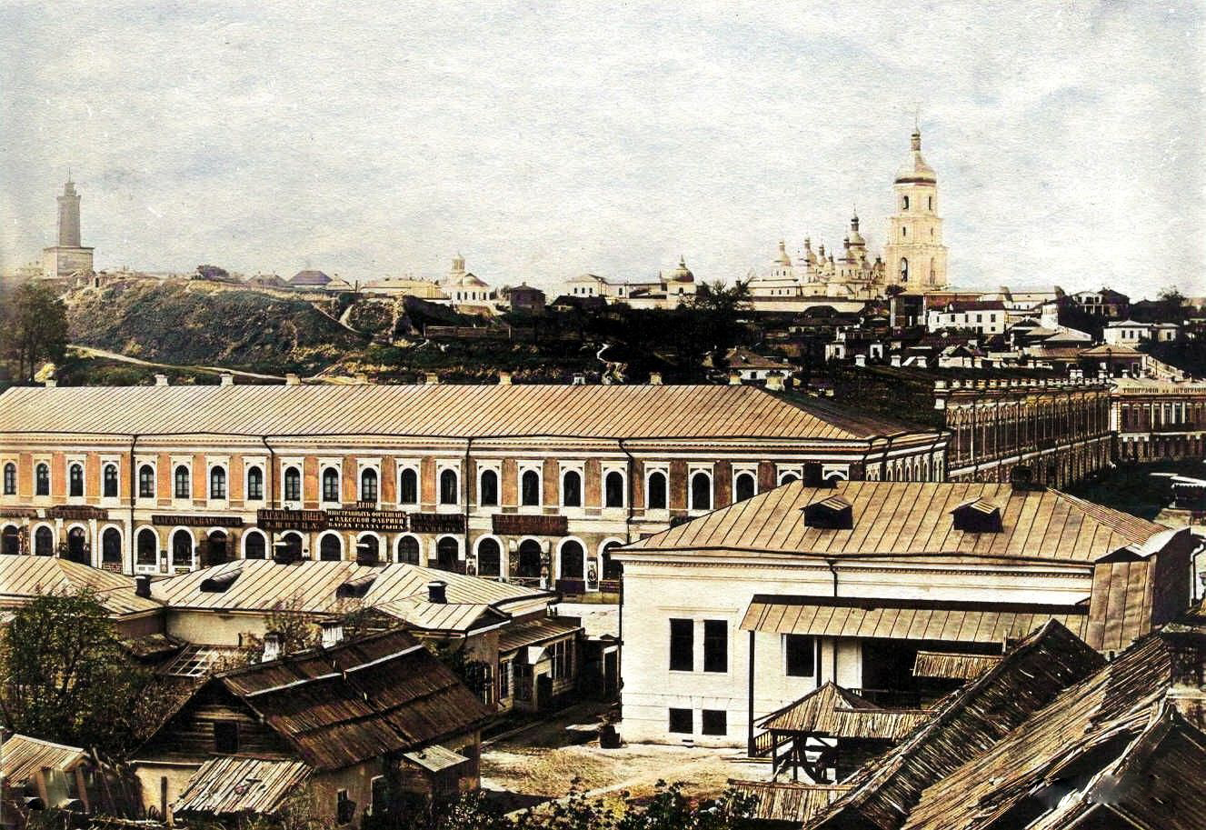 В сети появились цветные фотографии Киева в 1880-х. Современные для того времени здания граничат с полями и зелеными насаждениями.