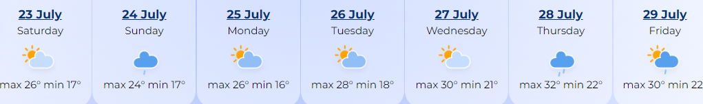 В последние пять дней июля столбики термометров днем покажут до +29...+31 градус, а ночью будет прохладно со средней температурой около +20 градусов.