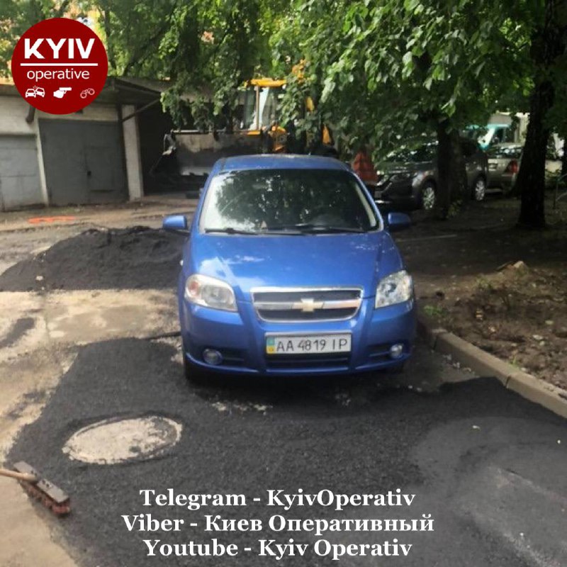 В Киеве на фото попал "герой парковки", который мешает проведению коммунальных работ.