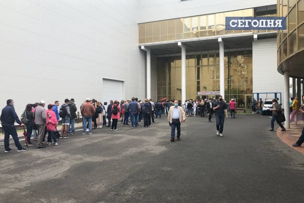 На опубликованных в Telegram снимках видно, что возле центра вакцинации населения в Киеве большие живые очереди.
