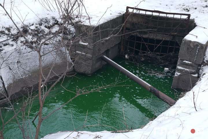 Киевская река Сырец приобрела ядовитый зеленый цвет. СМИ опубликовали жуткие фотографии из парка "Нивки", сделанные 21 января.