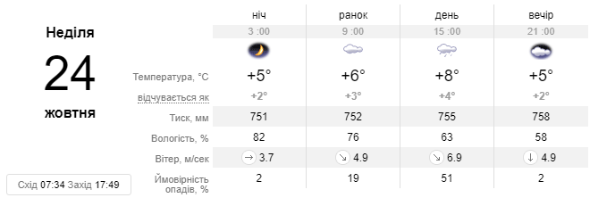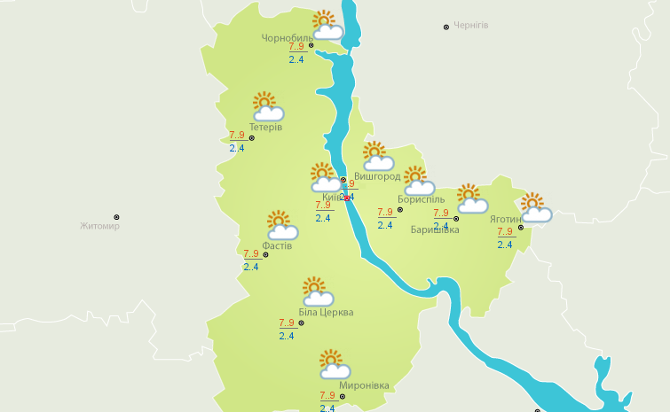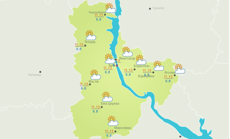 Погода в Киевской области 24 октября