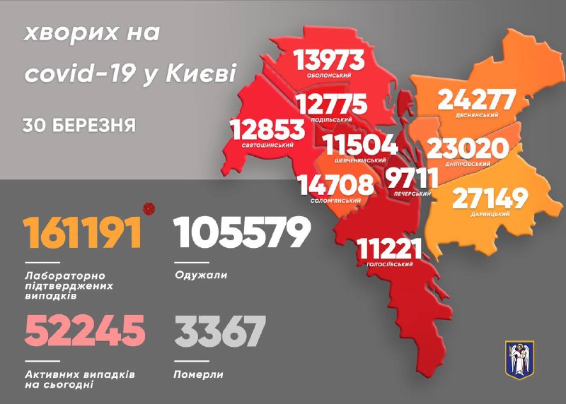 В Киеве за минувшие сутки, 29 марта, зафиксировано 1 422 новых случая коронавируса. Это на 1020 случаев больше, чем 28 марта (402 случая COVID). 33 человека погибли.
