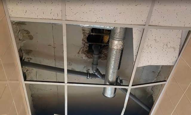 Школьники находятся в ужасных условиях во время обучения. По словам родителей, в одном из классов есть огромная дыра, которая выходит прямо в бассейн. Также в заведении сломаны туалеты и есть дыры в потолке. Как говорят родители, средства на общую сумму 1,2 млн гривен (на кровлю школы) выделялись четыре раза.