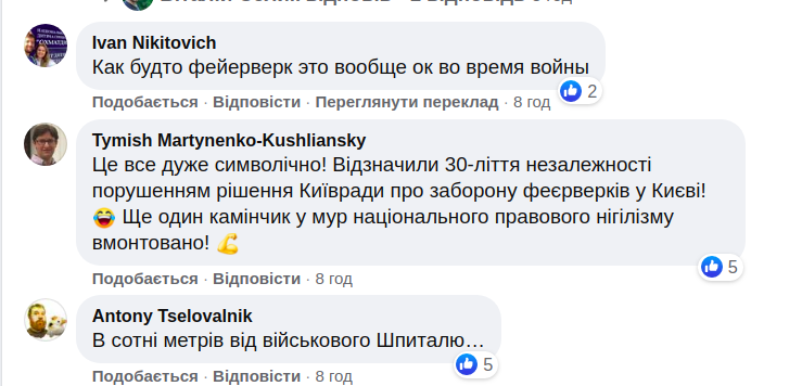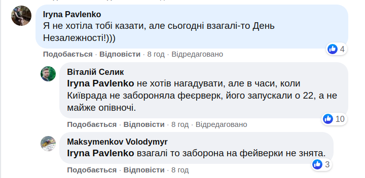 Киевляне жалуются на праздничные салюты ко Дню Независимости, которые запускали под окнами в ночь на среду, 25 августа.