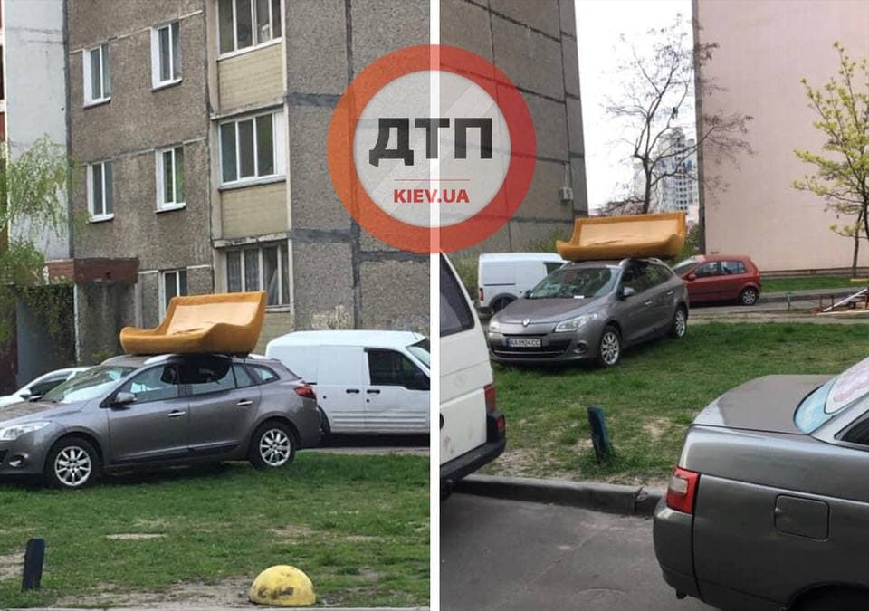 Инцидент произошел на улице Степана Олейника. Водитель оставил свой автомобиль на газоне. В отместку жители поставили на крышу его машины старый диван.