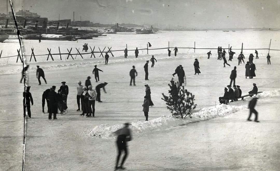 В сети появились уникальные архивные фото зимних развлечений киевлян на катке, организованном на реке Днепр в 1914 году.