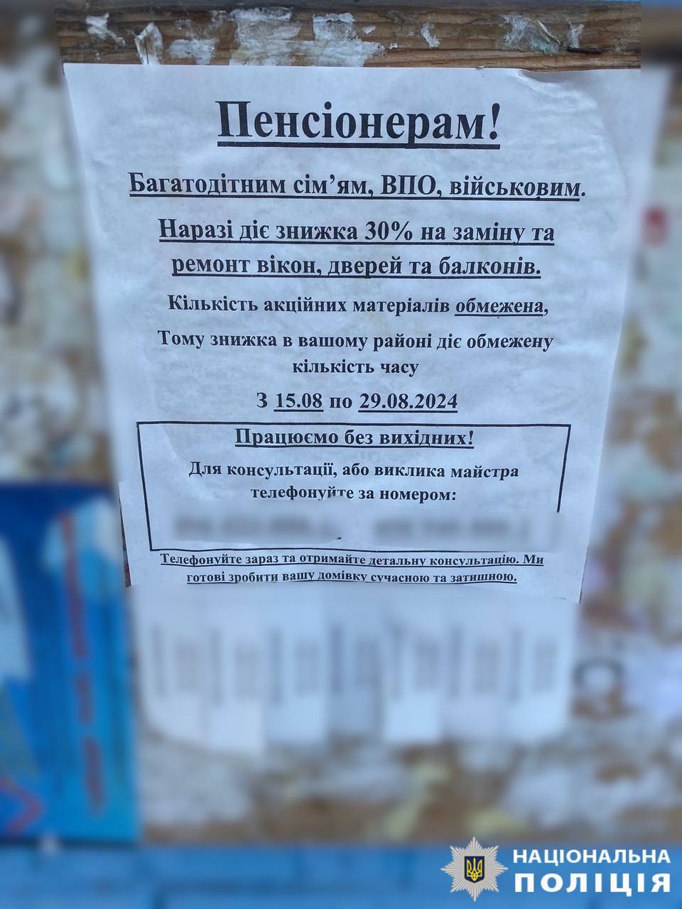 Как утверждают следователи, летом 2024 года мужчина расклеил объявление в Киевской области о якобы предоставлении услуг по изготовлению и установке металлопластиковых изделий по очень выгодным ценам.