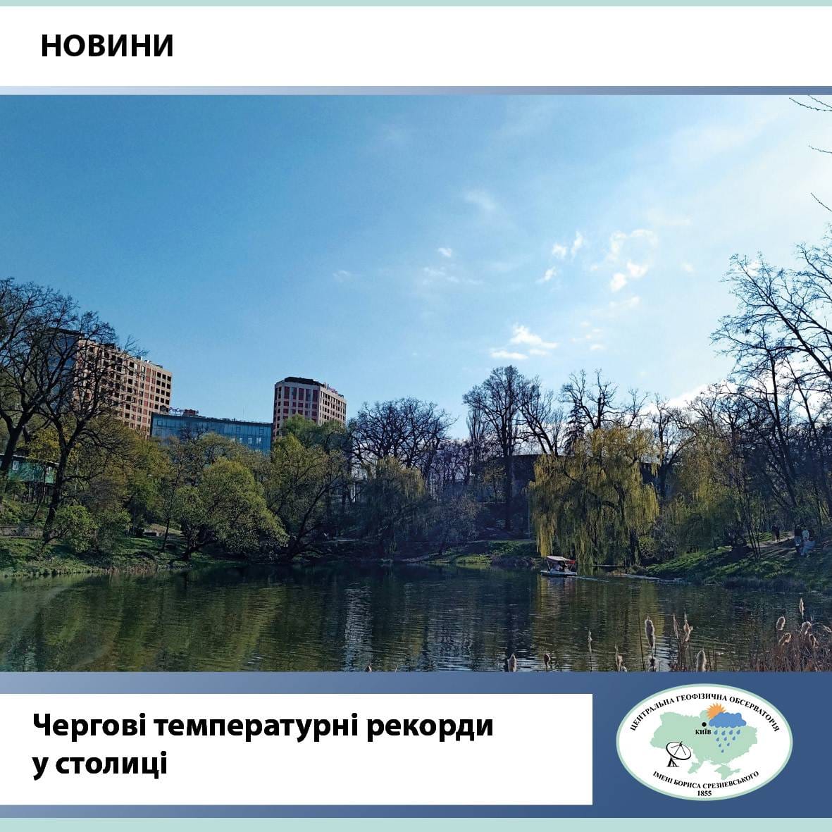 Также отмечается, что в среду, 10 апреля, рекорды фиксировались и на Метеорологической станции Барышевка. Они установили, что максимальная суточная температура воздуха составила +26.1°С, превысив прошлый рекордный показатель за 2016 год (+22.9°С).