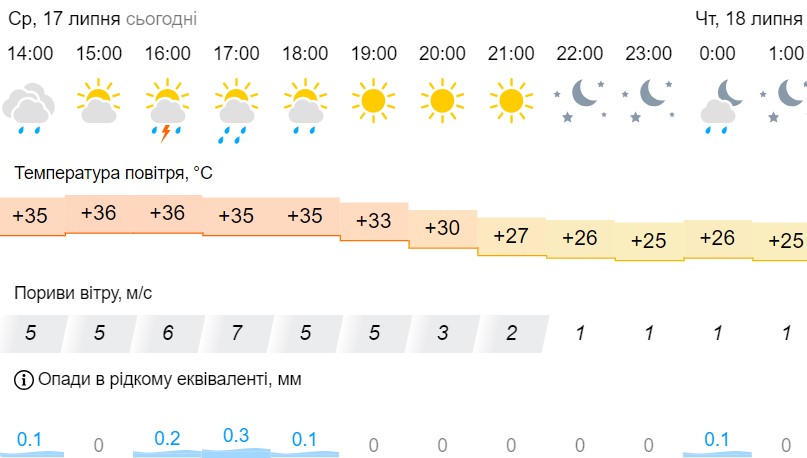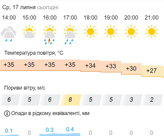 В среду, 17 июля, в Киеве ожидаются дожди. Осадки должны быть недолгими.