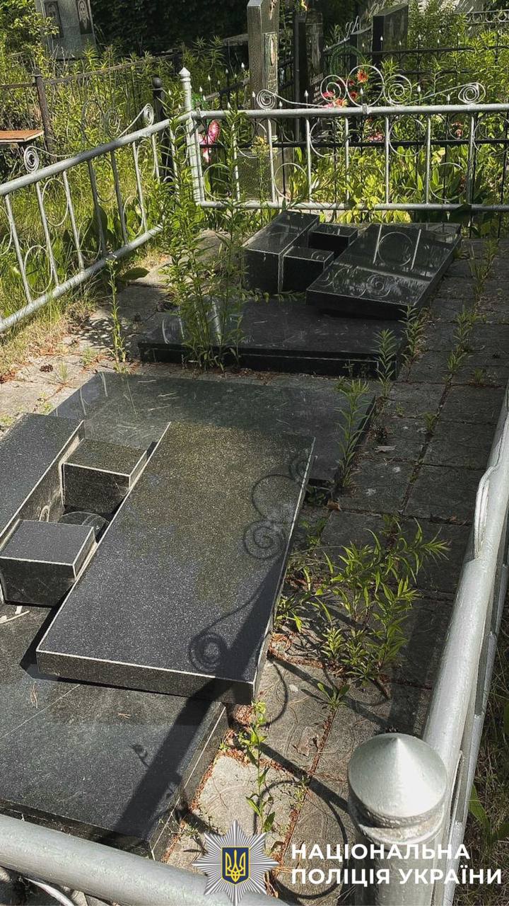 По факту надругательства над могилами, совершенной по хулиганским мотивам (ч. 3 ст. 297 УКУ), следователи сообщили фигуранту о подозрении. Ему грозит до семи лет заключения.