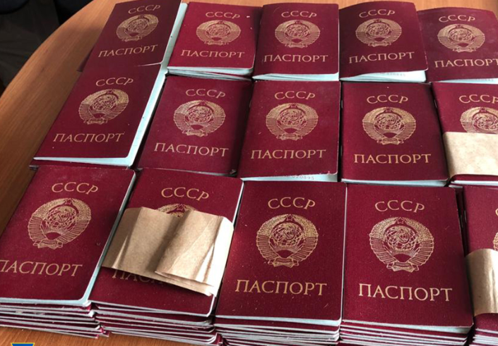 Во время его осмотра стражи порядка изъяли сотни незаполненных советских паспортов.