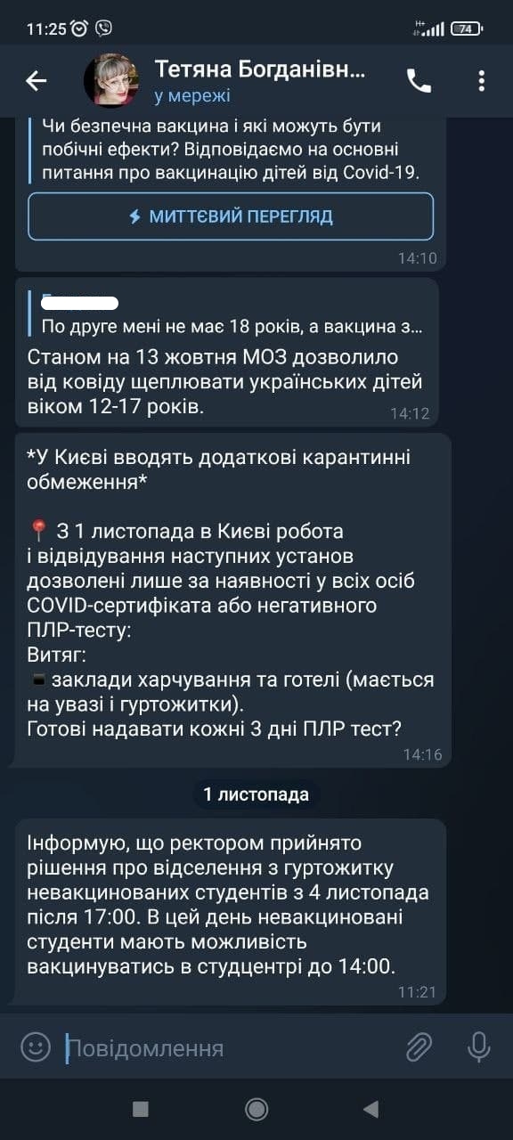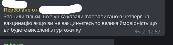 В Сети студенты уже публикуют соответсвующие скриншоты. Как правило, им звонят кураторы или другие уполномоченные лица, и сообщают дату и место вакцинации. При этом добавляют, что если те не явятся, то их могут выселить из общежития.