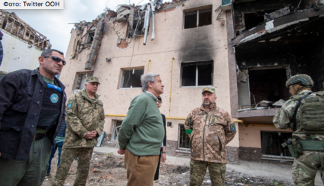 Генсек ООН прибыл в Украину после визита в Москву, где он договаривался с Путиным о "зеленом коридоре" для гражданских лиц и гуманитарных грузов. ООН заявила после встречи, что диктатор "дал принципиальное согласие" на участие ООН и Международного комитета Красного Креста в эвакуации мирных жителей с завода "Азовсталь" в Мариуполе. В Кремле отрицают его согласие.