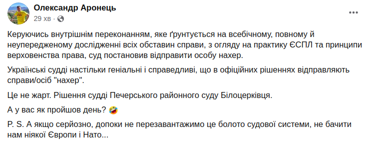 Это немедленно вызвало реакцию соцсетей - многие украинцы, среди которых известные политические и общественные деятели, бурно отреагировали на такое решение суда.